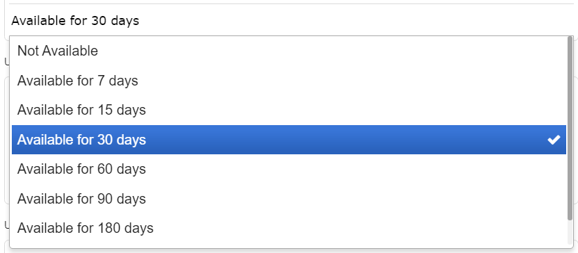 If enabled, the event recording can be made available as a video-on-demand (VOD) option for up to 365 days following the event. You can select the desired number of days from the options presented.