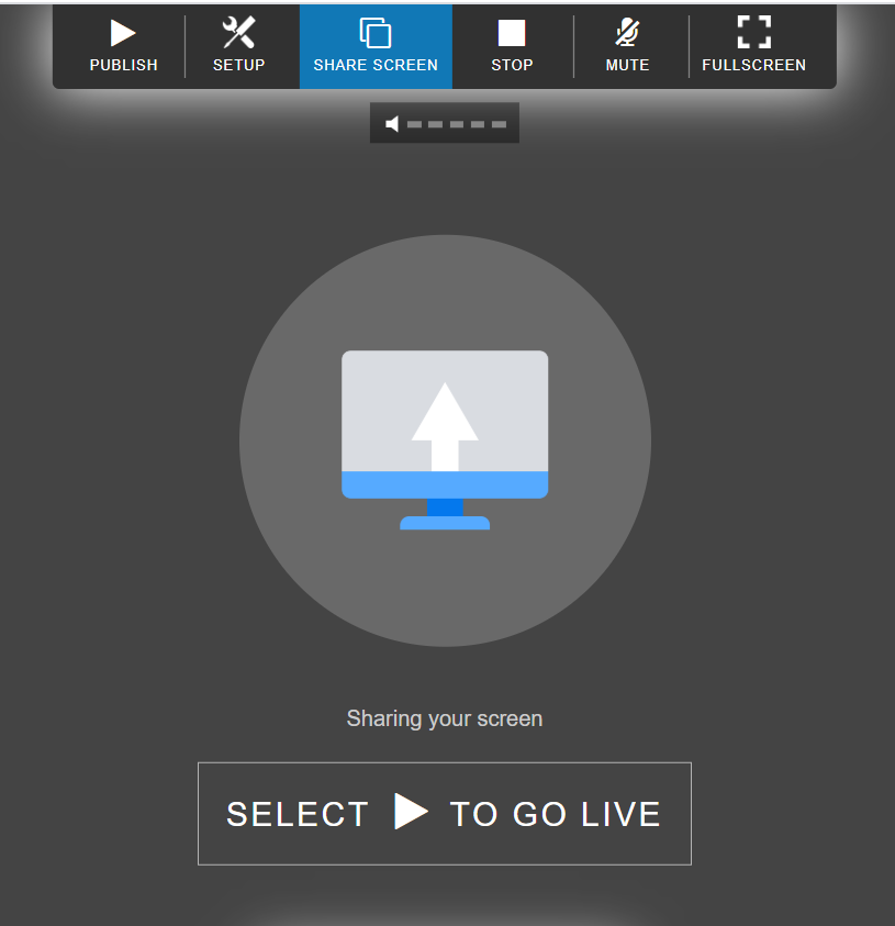The virtual stage also allows you to share your entire computer screen, or a program or a browser tab into your live-stream feed. To use this feature, follow the steps below: