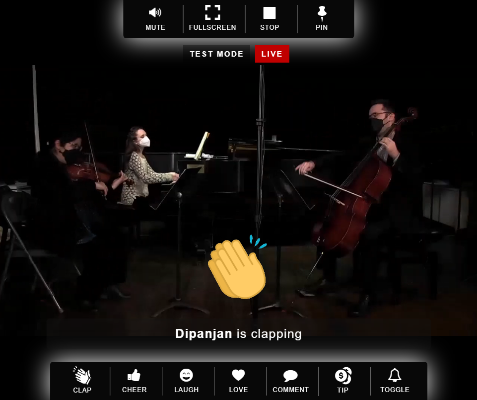 You can tune into the live session, also dubbed as a Watch Party, alongside your viewers. To do so, click Connect ➜ Watch during the event. Live session allows participants (including you) to share instant reactions (e.g. clap, cheer, comment etc). You will see the number of live viewers watching at any moment.