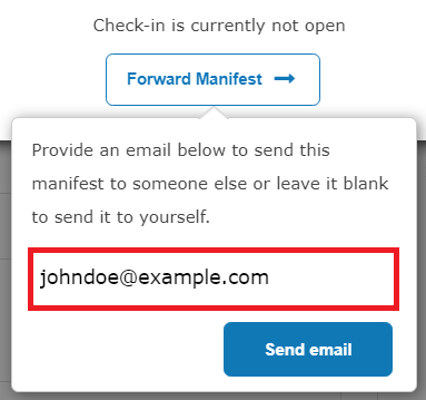 The manifest can be forwarded via email, if needed, by clicking the Forward Manifest button and entering recipient’s email address.
